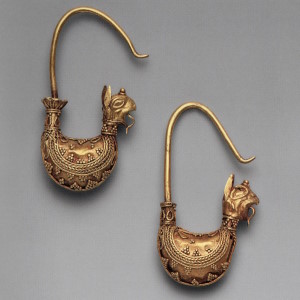 VII в. до н.э. Золото; литьё, пайка. 1,1×2,0 см. Центральная Азия, Тува, курган Аржан-2. Раскопки К.В. Чугунова в 2001 г. Инв. №2917/20, 21. (Открыть илл. со стр. 58 в новом окне)