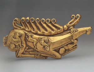 IV-III вв. до н.э. Золото; литьё, чеканка, пайка. 8,2×12,3 см. Сибирская коллекция Петра Первого. Грабительские раскопки первой четверти XVIII в. Инв. №Си 1/6.