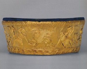 Середина V в. до н.э. Золото. Длина 24,0 см. Таманский полуостров. IV Семибратний курган. Раскопки В.Г. Тизенгаузена в 1876 г. Инв. №СБр.IV.14. (Открыть в новом окне илл. со стр.: 62, 63)