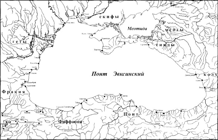 Днестровского лимана появились Тира и Никоний. В VI веке до н.э. на Керченском полуострове милетцы построили Пантикапей, возвышавшийся над Боспором Киммерийским. Интересно, что слово «Пантикапей» — этноним не греческого, а иранского происхождения и означает «рыбий путь». Это позволяет предположить, что здесь до греков находилось другое поселение — возможно, киммерийское. Впоследствии на Керченском полуострове возникли Тиритака, Нимфей, Киммерик и другие колонии. Милетцы также были основателями Феодосии. Далее их экспансия распространилась на азиатский берег Боспора, где появились Кепы, а позже — Фанагория, основанная выходцами из Теоса. Северо-восточное побережье Меотиды и Понта населяли меоты, синды, гениохи и далее — колхи, известные по мифу об аргонавтах. Так на месте современной Анапы появилась Синдская гавань, или Горгиппия, на месте Сухуми — Диоскуриада, основанная милетцами в 550-530 годах до н.э. В V веке до н.э. был заложен Херсонес Таврический, а в III веке до н.э. в результате вторичной колонизации по инициативе боспорских греков в дельте реки Дон возник Танаис, который занял место погибшего Елизаветовского городища (ил. 8).