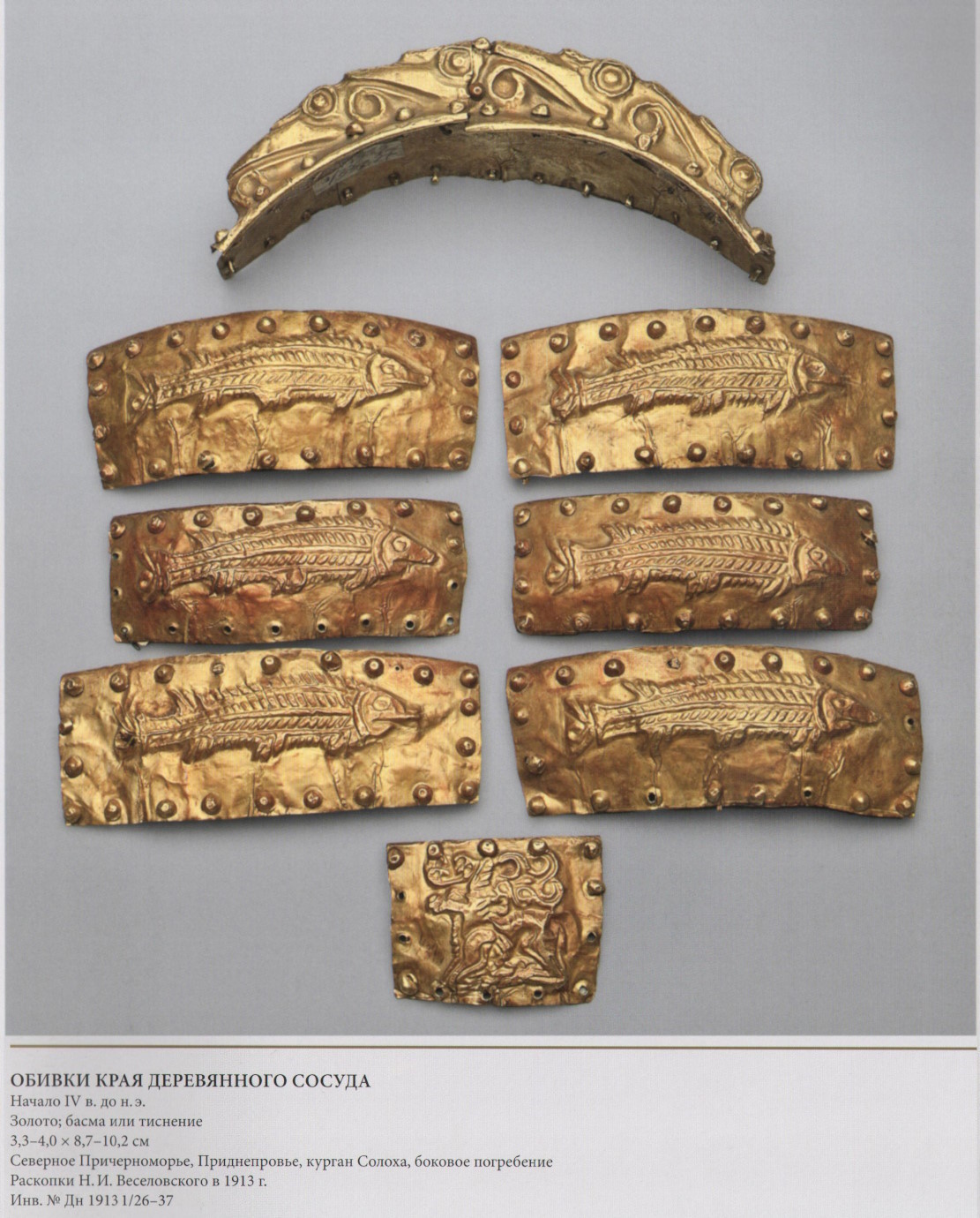 Литература: Толстой, Кондаков 1890. С. 48, Рис. 50; Руденко 1962. С. 45. Табл. XVI, 1; Артамонов 1973. С. 169, 170. Ил. 218; Иванов, Луконин, Смесова 1984. С. 17. Кат. [3] (38/39/40/41)