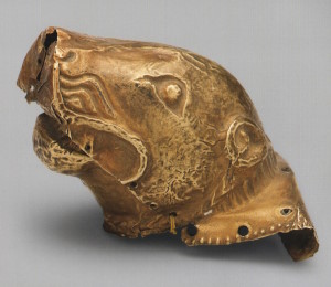 IV в. до н.э. Наносник. Золото; тиснение, металлопластика, чеканка, пайка. 4,5×2,3×1,9 см.
