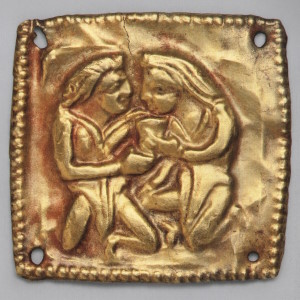 IV в. до н.э. Золото, металлопластика. 14,0×19,0 см. Северное Причерноморье, Приднепровье, Геремесов курган. Раскопки И.Е. Забелина в 1859 г. Инв. №Дн 1859 1/2.
