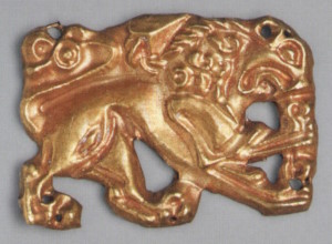 IV-III вв. до н.э. Золото; литьё, чеканка, пайка. 8,2×12,3 см. Сибирская коллекция Петра Первого. Грабительские раскопки первой четверти XVIII в. Инв. №Си 1/6.