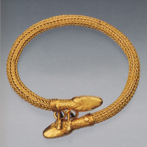 Конец V — начало IV в. до н.э. Золото, эмаль. Длина 26,5 см. Некрополь Пантикапея. Раскопки А.Е. Люценко в 1854 г. Инв. №П.1854.22.