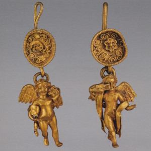 Серьги с подвесками в виде фигурок Эрота. ^