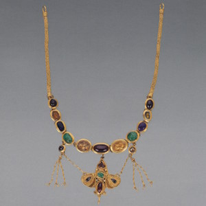 I в. н.э. Золото, изумруд, альмандин, аметист, горный хрусталь, стекло, мёртвый жемчуг. Длина 30,5 см. Некрополь Херсонеса. Раскопки К.К. Косцюшко-Валюжинича в 1896 г. Инв №Х.1896.18.