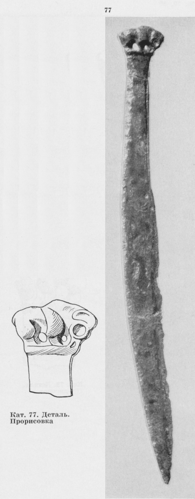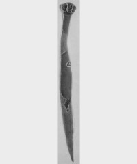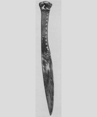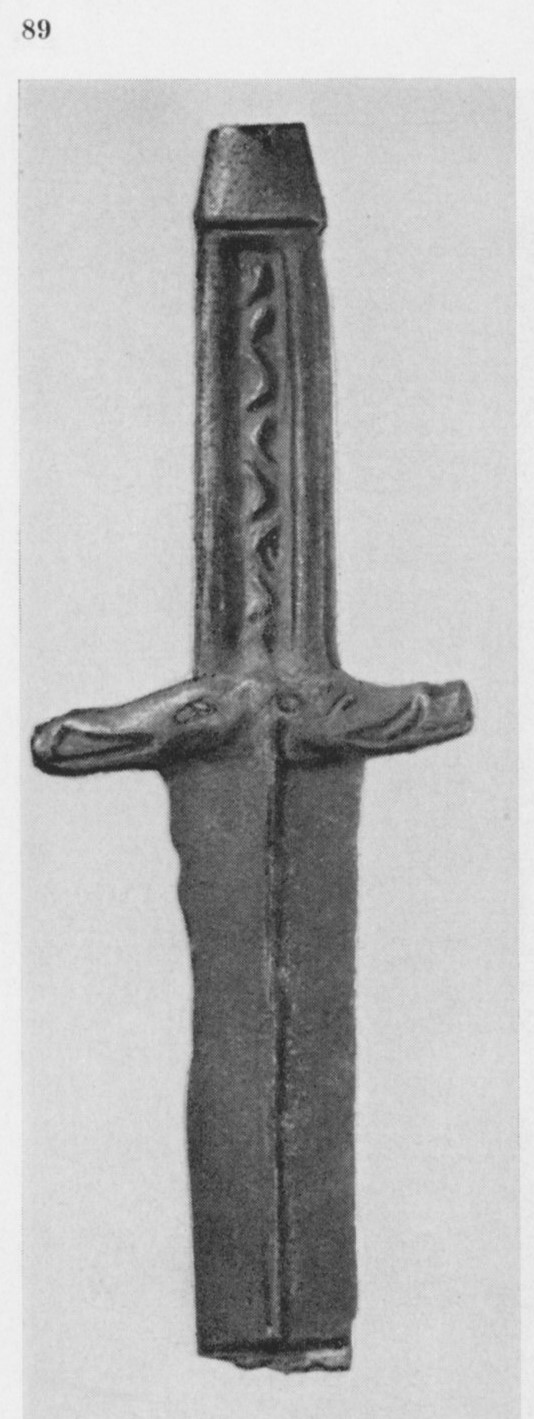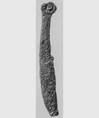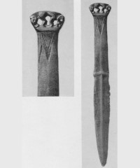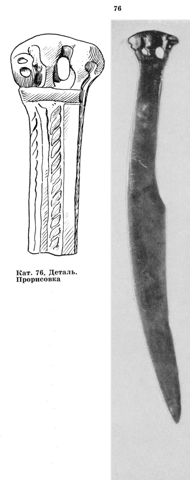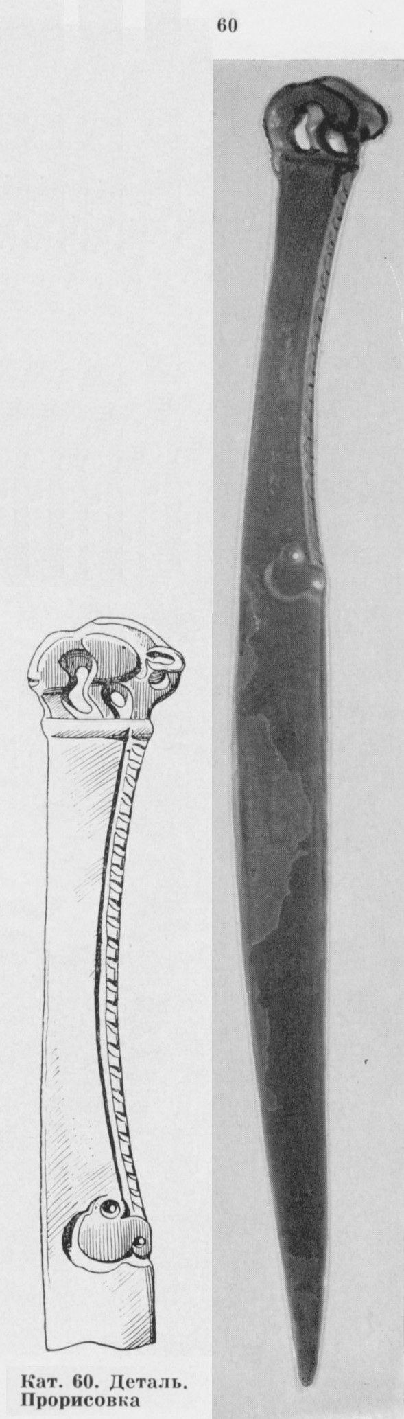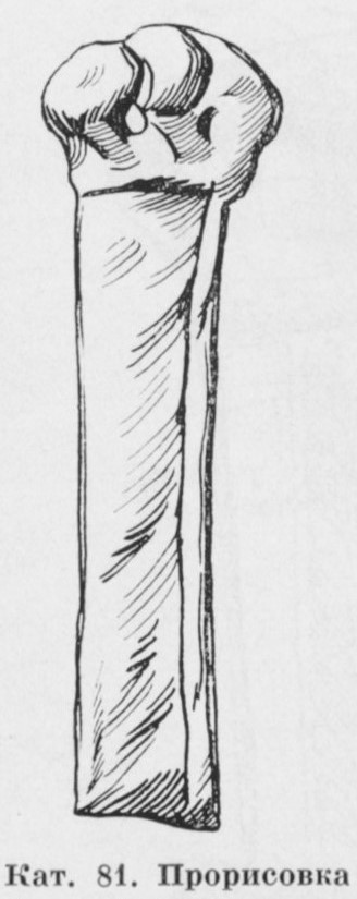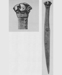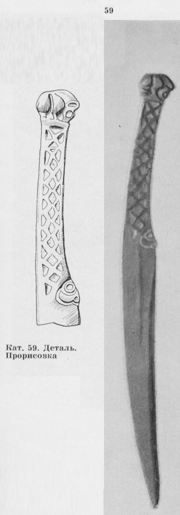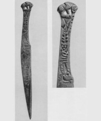 В каталоге иллюстрируется 305 предметов; 20 ножей и фрагментов ножей (кат. 268, 271-273, 277-286, 288-291, 293, 295) с одинаковым сюжетом — схематическим изображением головы птицы на выступе клинка — не воспроизводятся.