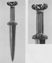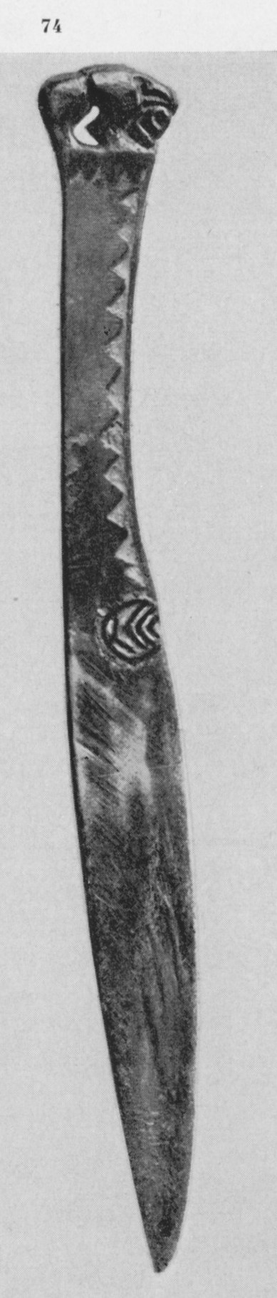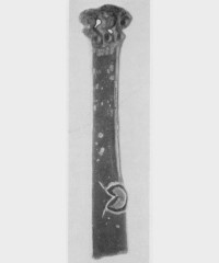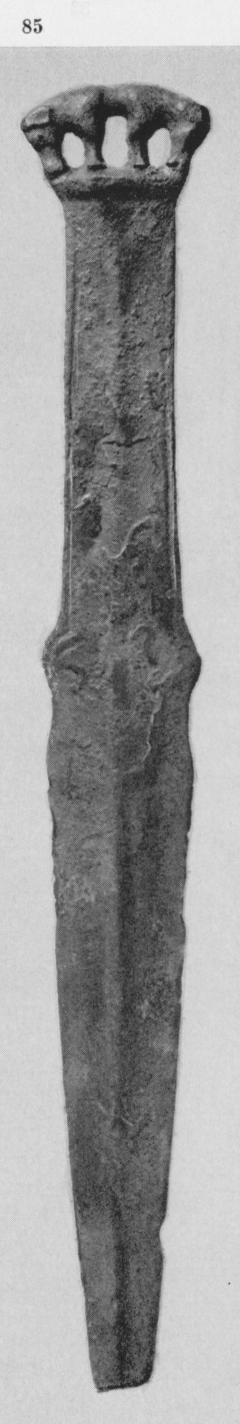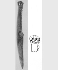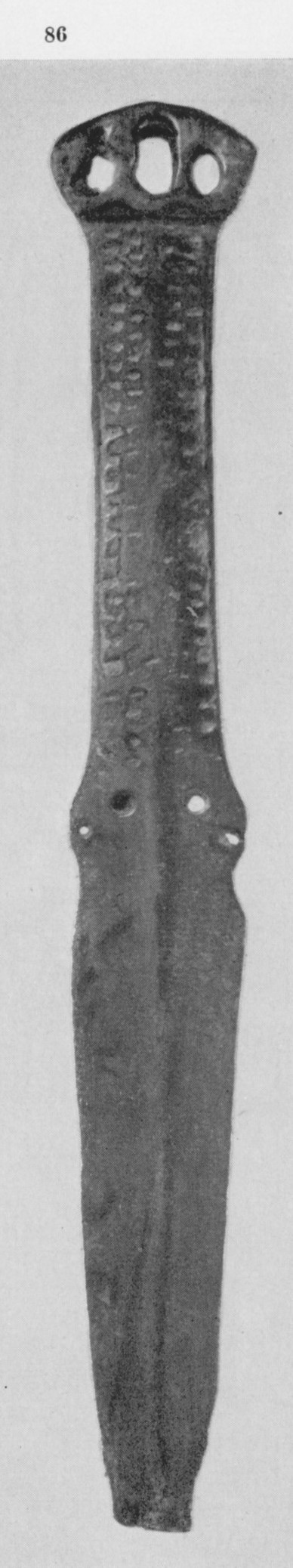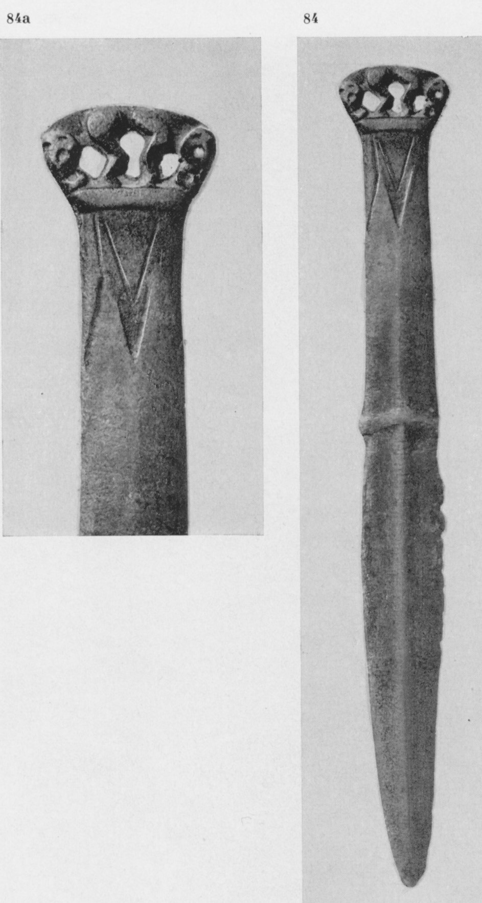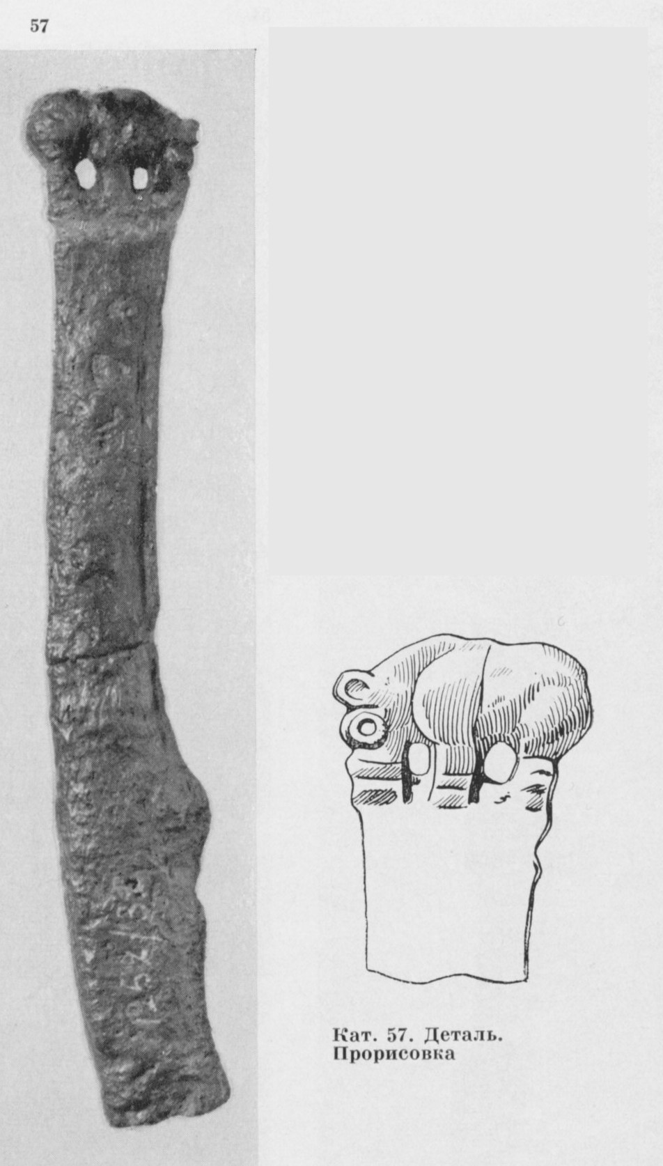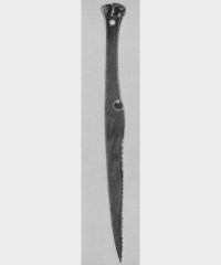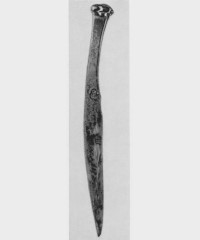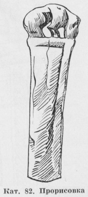 В каталоге иллюстрируется 305 предметов; 20 ножей и фрагментов ножей (кат. 268, 271-273, 277-286, 288-291, 293, 295) с одинаковым сюжетом — схематическим изображением головы птицы на выступе клинка — не воспроизводятся.