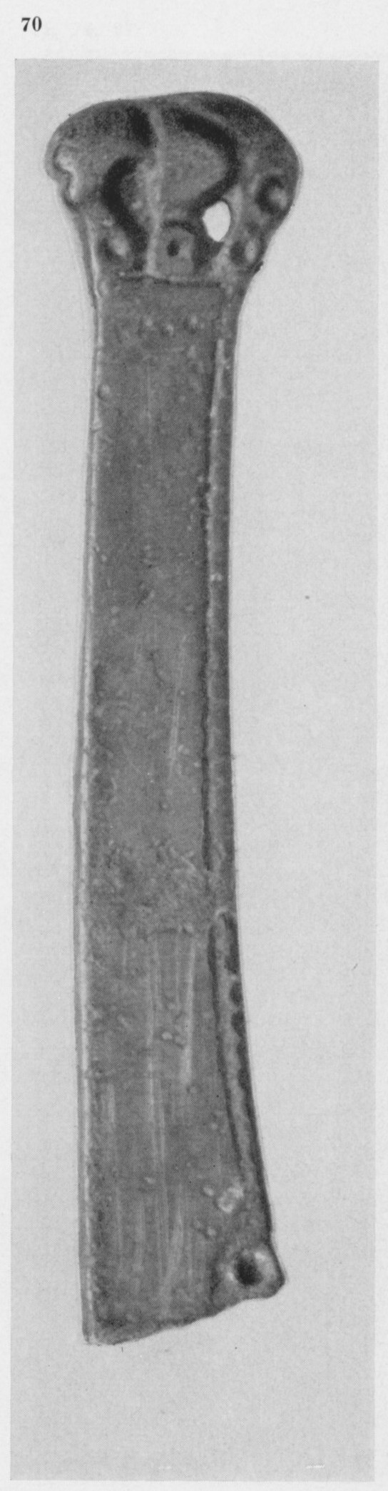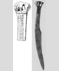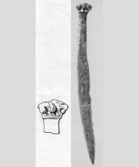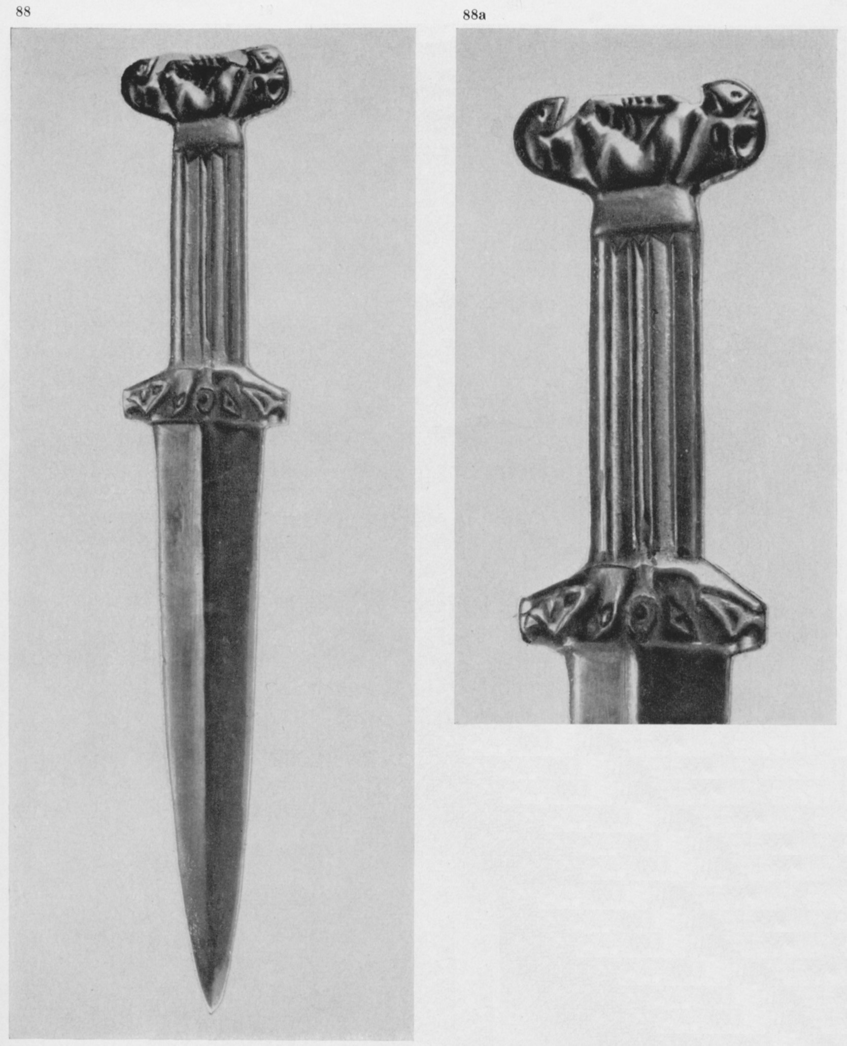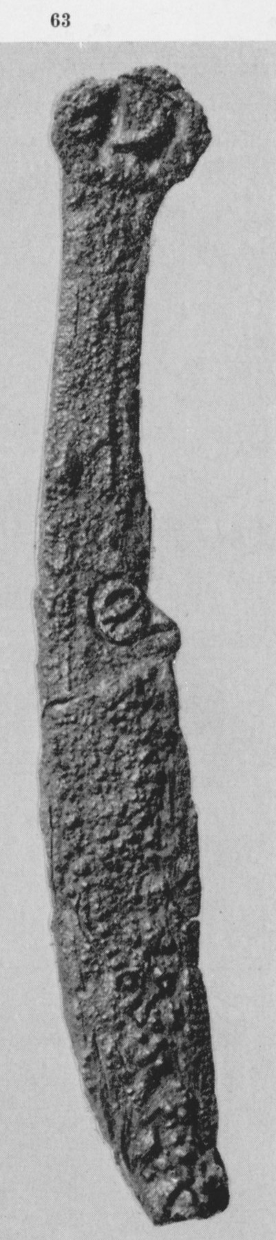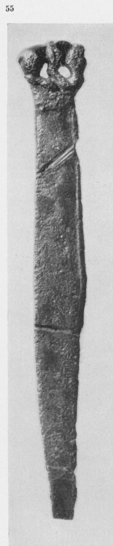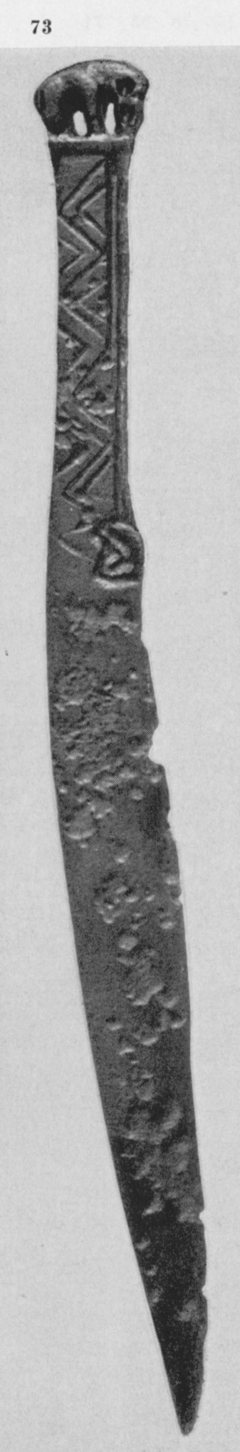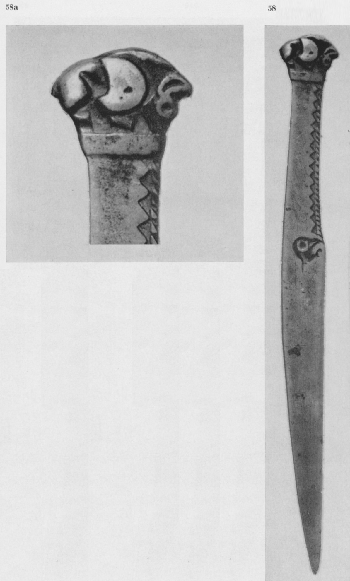 В каталоге иллюстрируется 305 предметов; 20 ножей и фрагментов ножей (кат. 268, 271-273, 277-286, 288-291, 293, 295) с одинаковым сюжетом — схематическим изображением головы птицы на выступе клинка — не воспроизводятся.