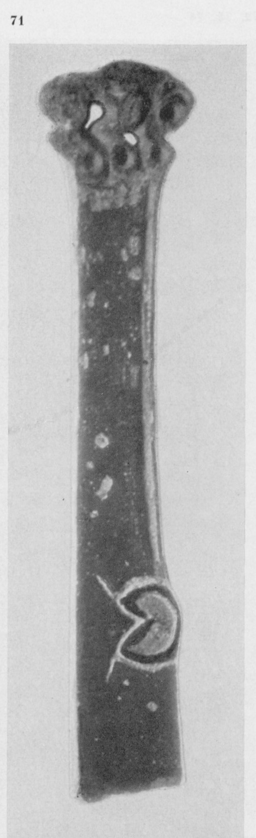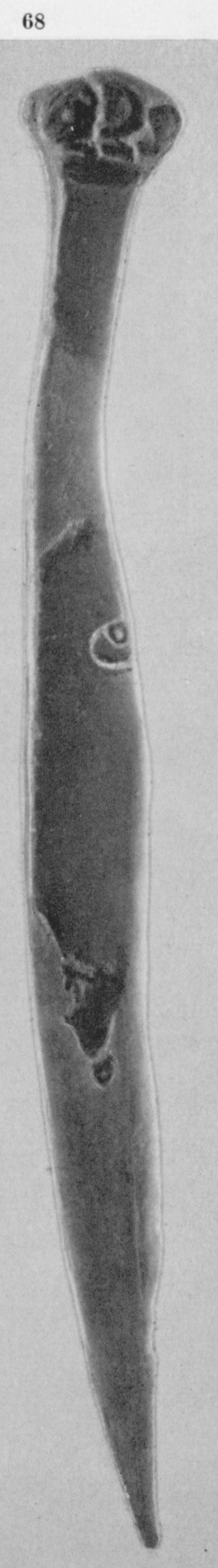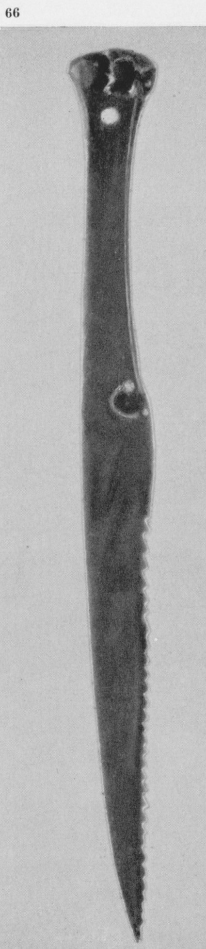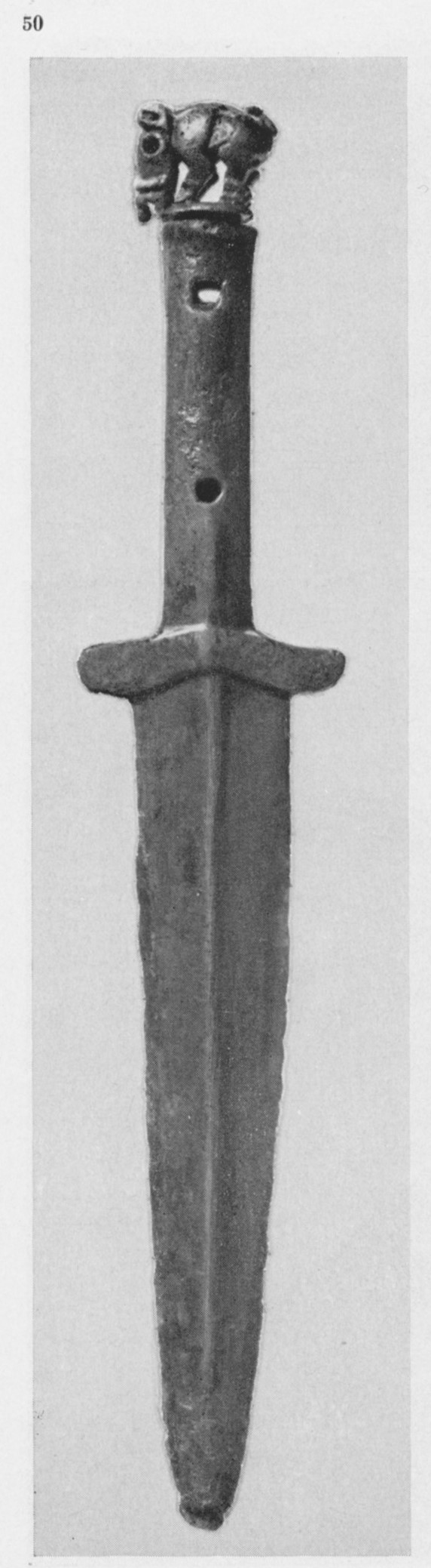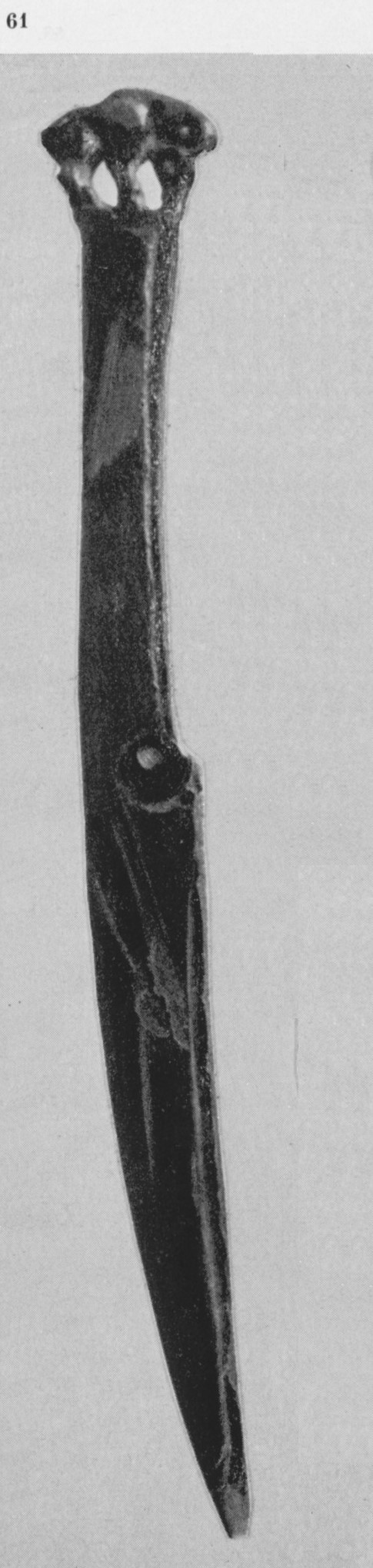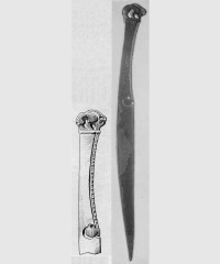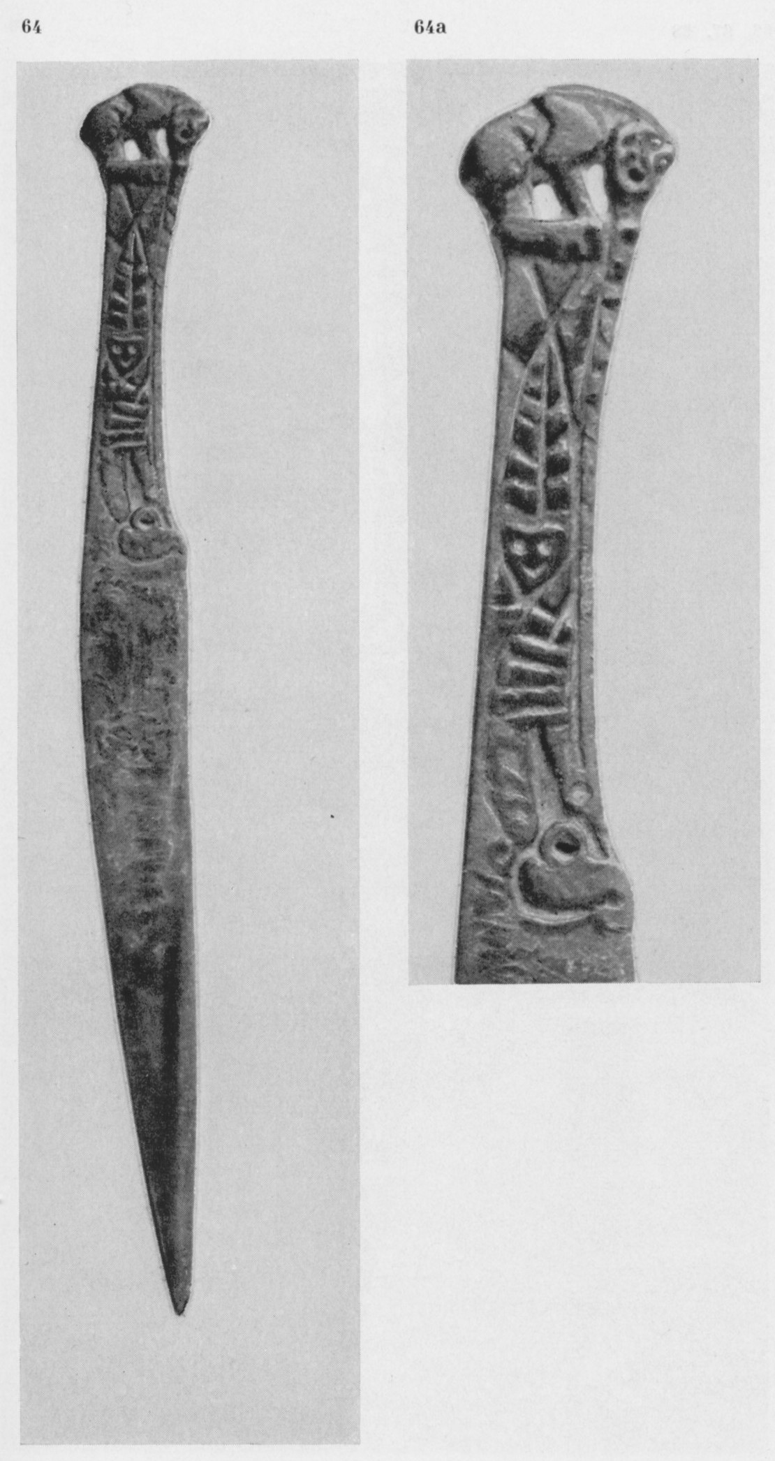 В каталоге иллюстрируется 305 предметов; 20 ножей и фрагментов ножей (кат. 268, 271-273, 277-286, 288-291, 293, 295) с одинаковым сюжетом — схематическим изображением головы птицы на выступе клинка — не воспроизводятся.