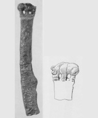 Фрагмент навершия в виде головы горного козла с шеей. Аналогичен кат. 2.